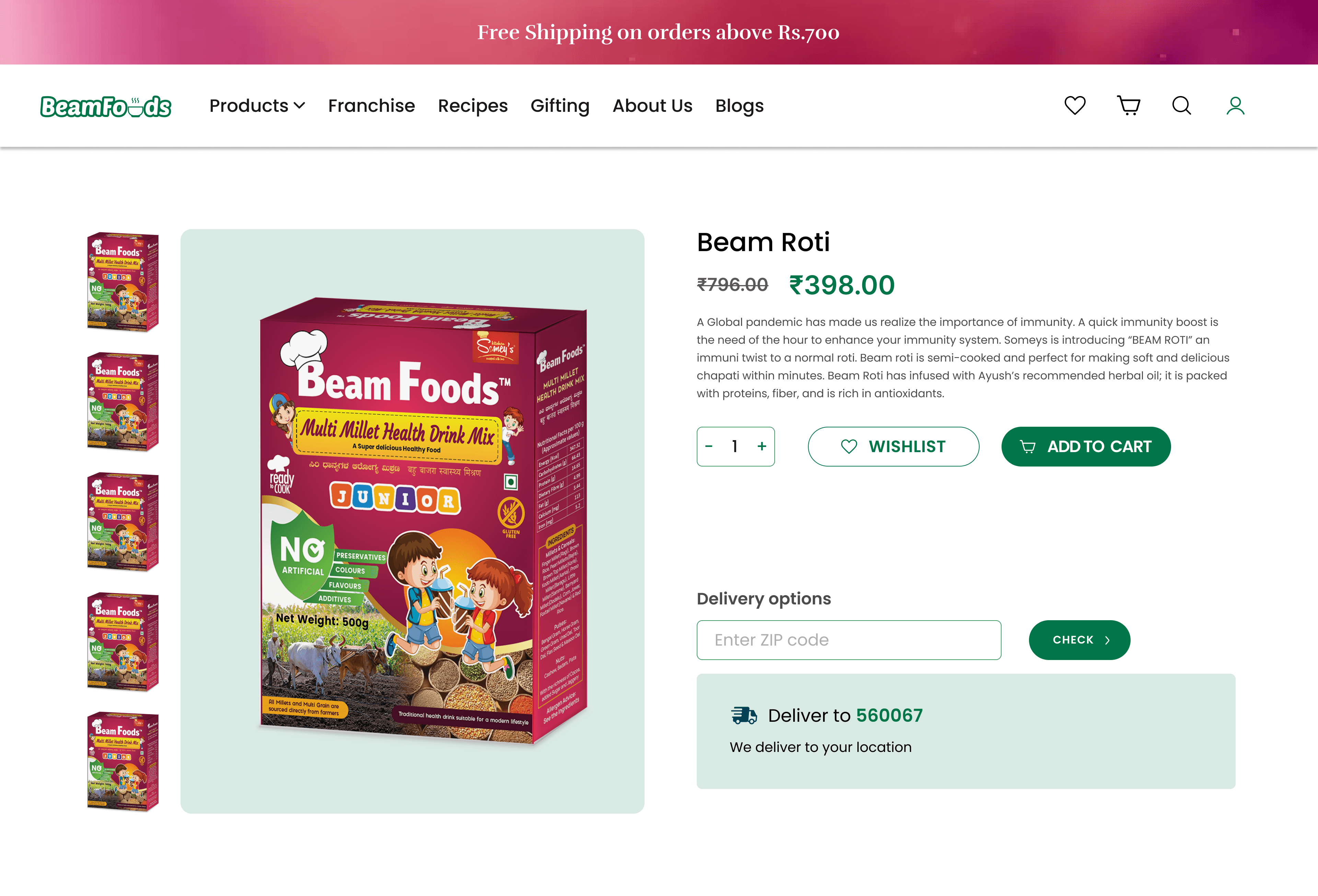 BeamFoods products are made with the goodness of natural ingredients procured from farmers across India; utmost care is taken to deliver the best quality product. We have a wide range of products which include Immunity Drops, Immunity Chapathi, Millet Chapathi, Millet Poori, Masalas, Chutney Powders, Health Mix, etc.